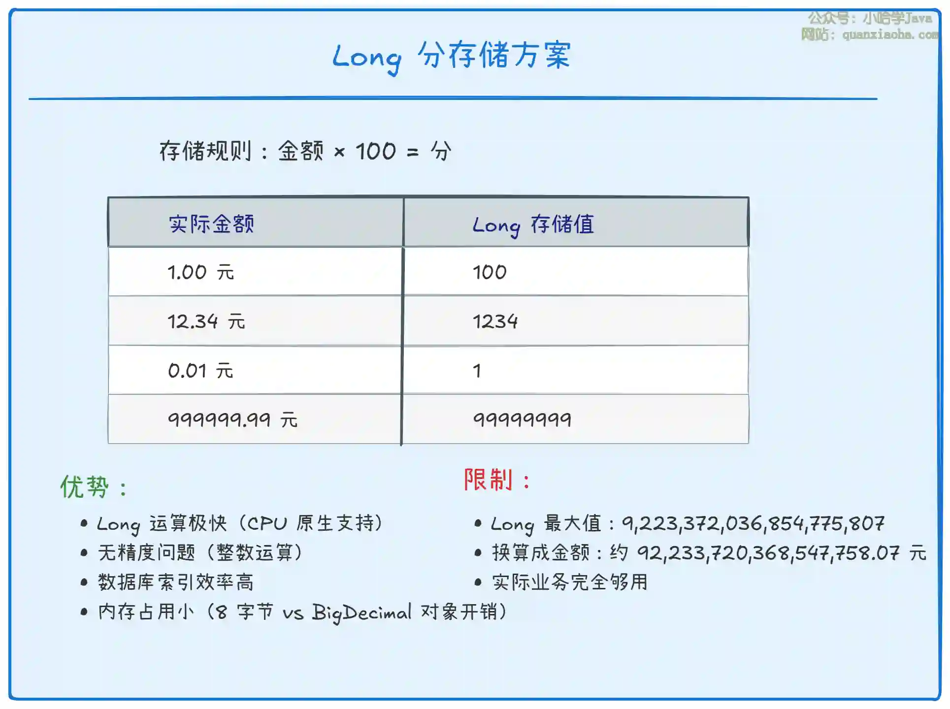 一句话概括:金融系统推荐 BigDecimal,互联网高并发场景可用 Long 分存储,永远不要用浮点数。
