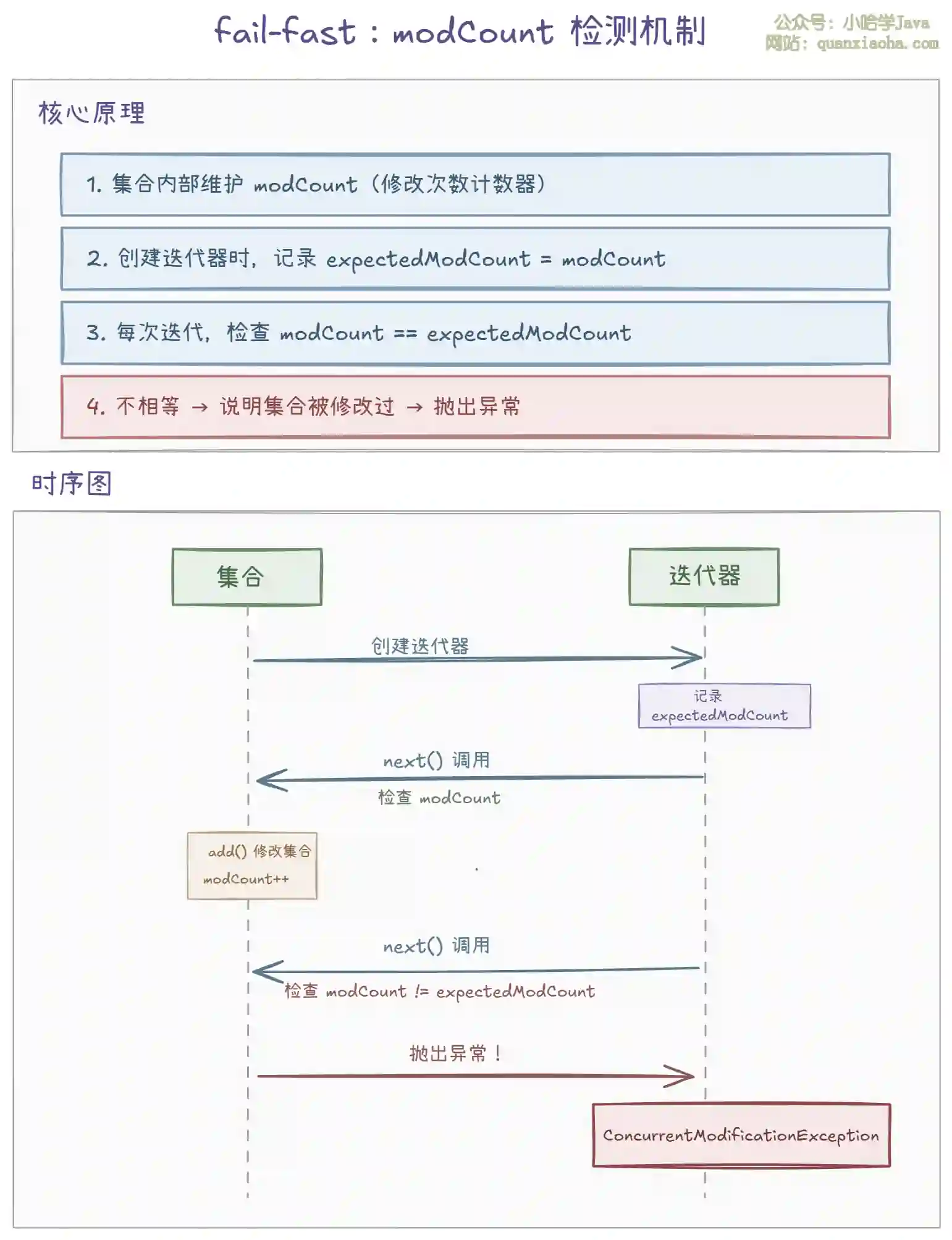 上图展示了 fail-fast 的核心检测机制。关键点: