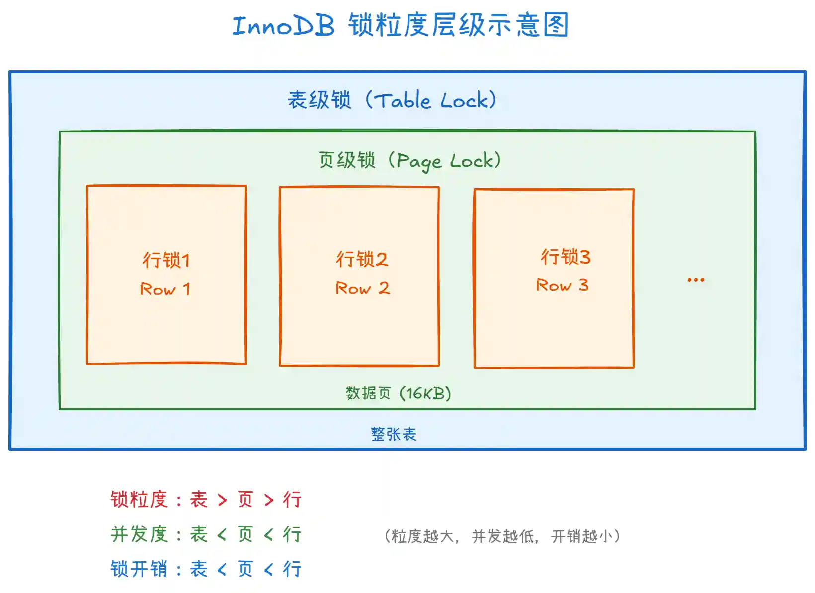 谈谈 InnoDB 中的表级锁、页级锁、行级锁?