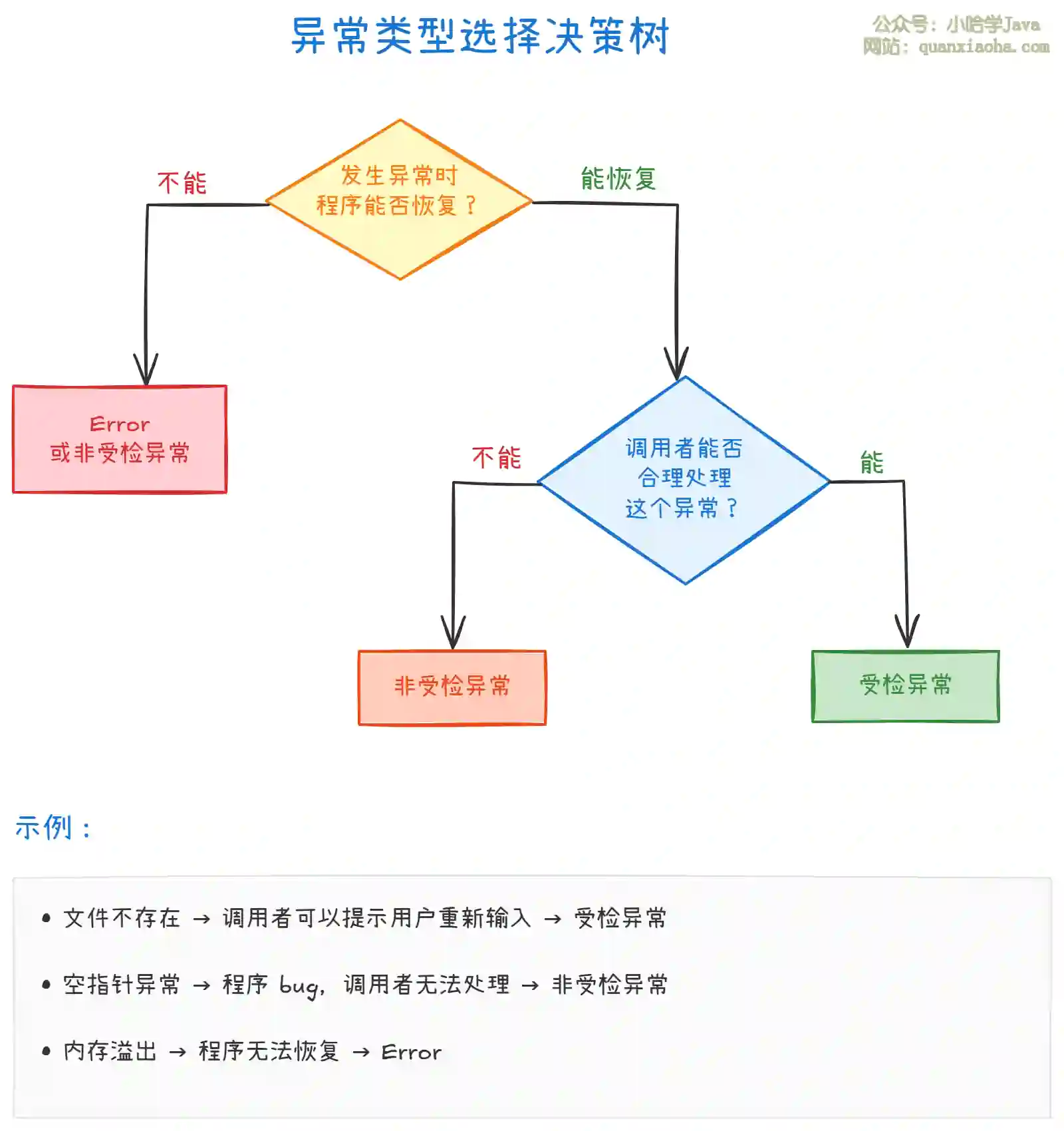上图展示了选择异常类型的决策流程。关键原则: