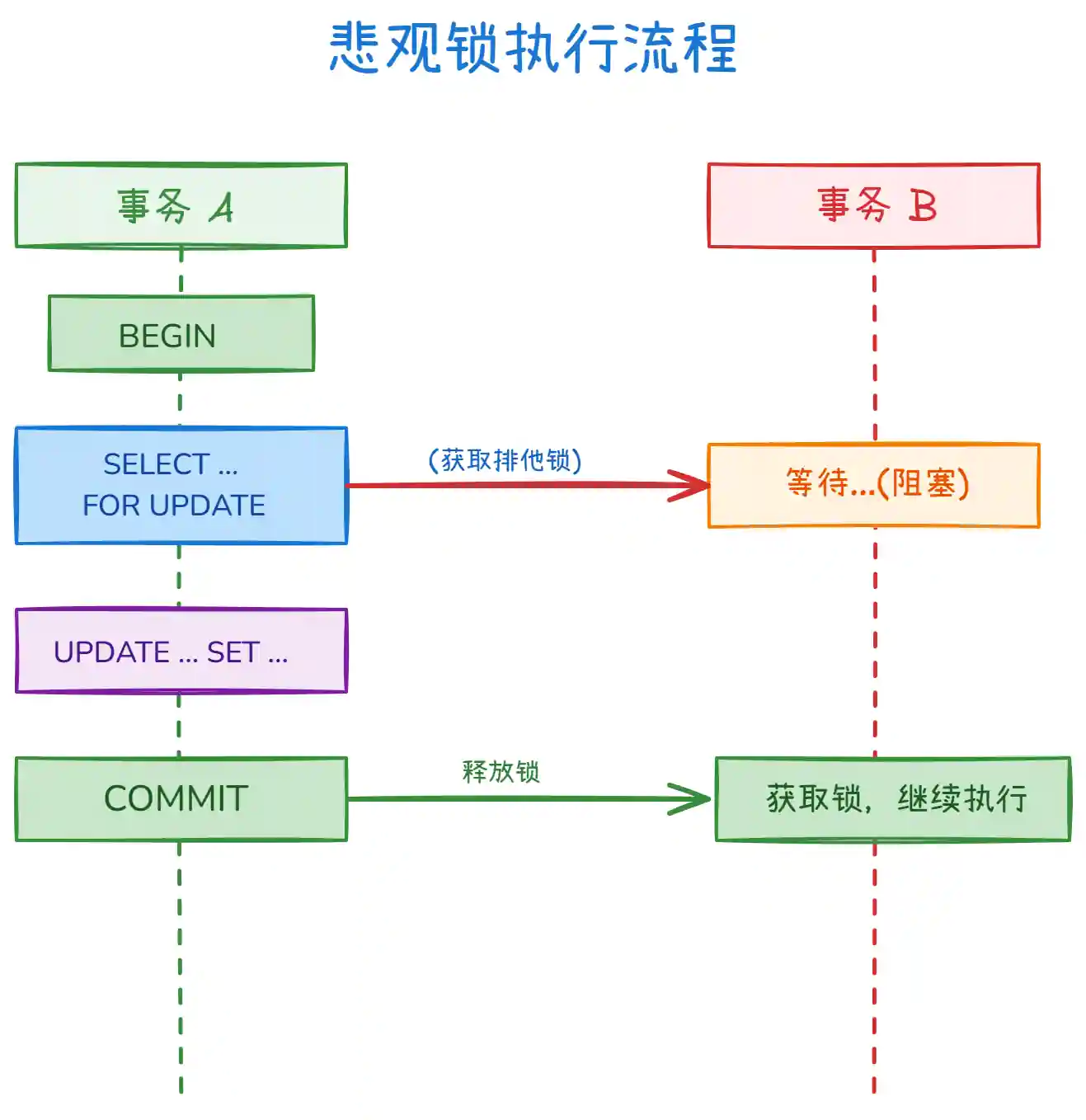 上图展示了悲观锁的执行流程: