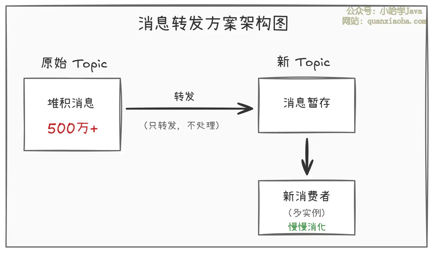 方案 2:消息转发到新 Topic(堆积量巨大时)