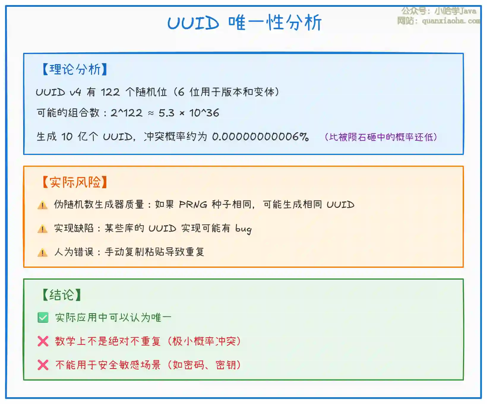 - 正确认知:UUID 适合做标识符,不适合做安全凭证