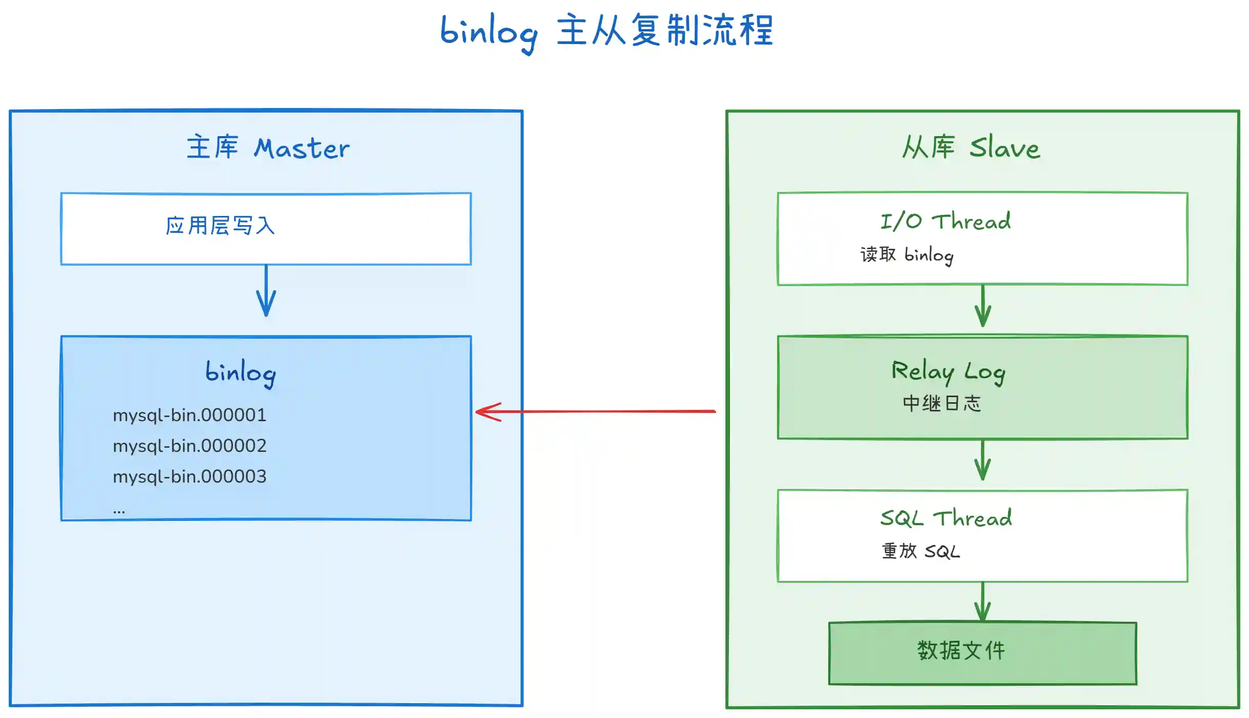 - I/O Thread:连接主库,读取 binlog,写入本地的 Relay Log(中继日志)