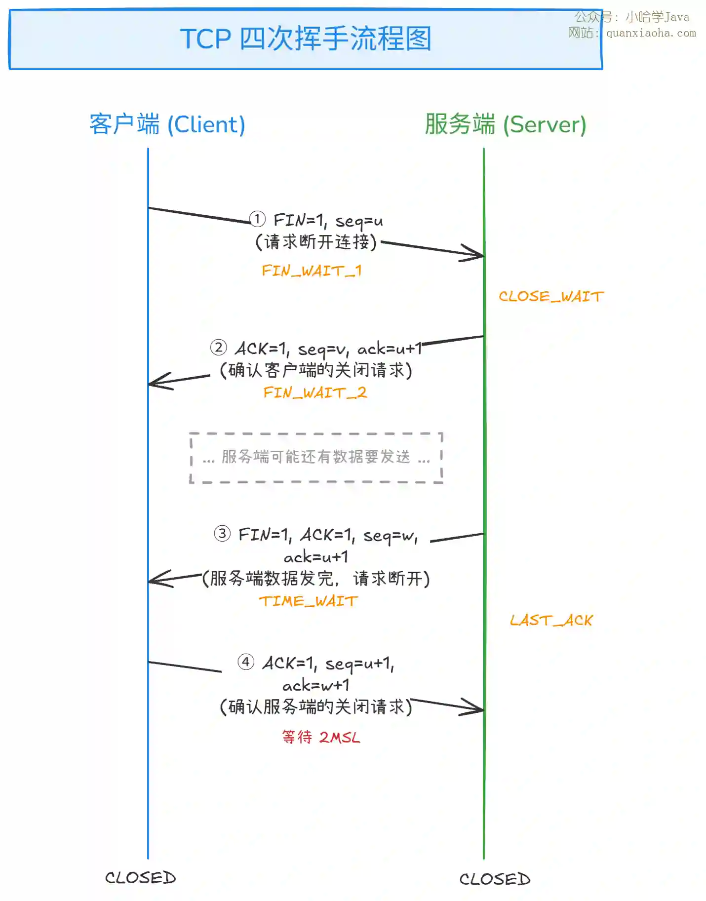 - 本质:服务端告诉客户端 "收到你的关闭请求,但我可能还有话要说"