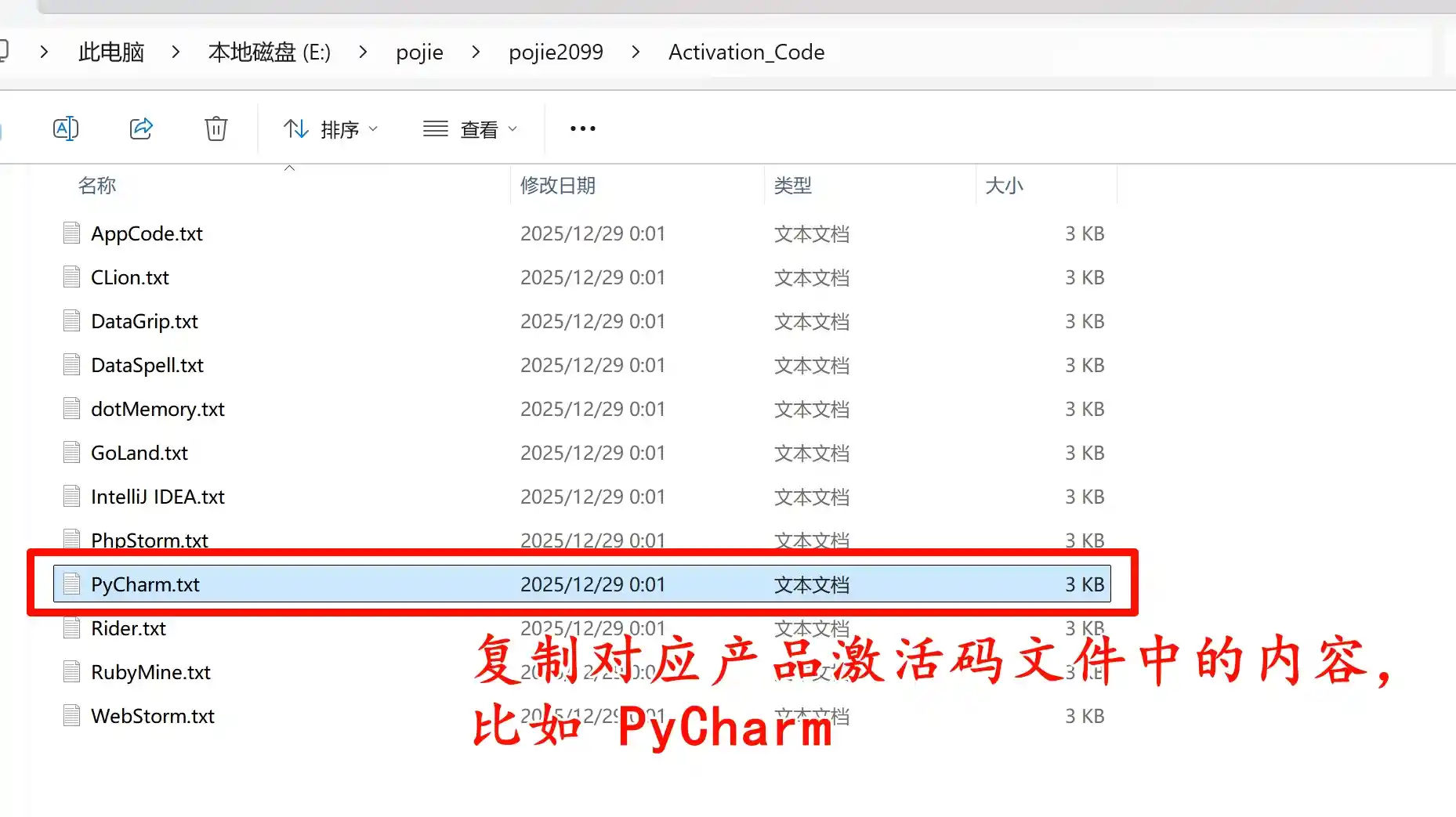 选择你想要激活的产品对应的 txt 文件,比如 IDEA, 就打开 IntelliJ IDEA.txt 文件: